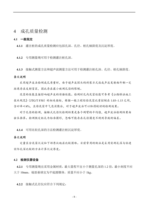 JGJ 106自2014年版本实施至今已有十二年,在这十二年间随着我国城市化进程加速和基础设施建设不断深入,很多新技术不断涌现,成孔质量检测技术也快速发展,已经从辅助手段逐步成长为灌注桩质量控制不可或缺的一环。基桩的成孔质量检测能够获得被检桩孔的孔径、孔深、垂直度等重要参数。